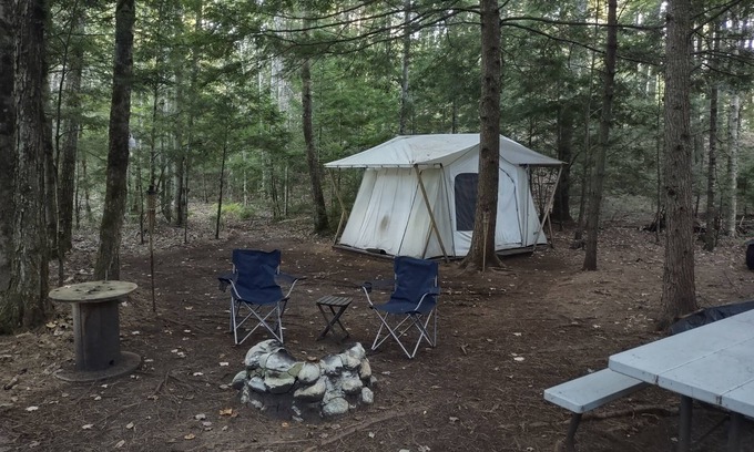 Peaceful getaway from the stress of your busy life. Come experience the rural countryside with the convenience of a short drive to attractions and events that beautiful Maine has to offer. Fully equipped tents all set and ready to go with firewood and a cozy queen size bed and plenty of room for extra guests if needed. No need to bring all your stuff because everything is available right down to silverware! Kayaking is available on site so take a leisurely adventure down the river or a stroll through the trails and explore some of the beautiful lush green countryside right from your campsite. Private and adorable outhouses are a short walk from your site and are fully equipped with basic essentials. Coffee service is available on request. No need to spend time setting up your campsite just bring some beverages and food and your done. Dog and kid friendly as well so no need to leave your kids or pup behind so come and visit with us you won’t be disappointed.