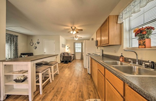 Enjoy the rustic atmosphere of this charming vacation rental in Canyon Lake, Texas, for your next spontaneous getaway! The 1-bath studio cottage features a sheltered front porch with seating, ideal for enjoying the weather with a cup of coffee. Let your pets roam free in the spacious fenced yard, followed by an evening picnic in Overlook Park as the sun sinks over the lake. Complete with all the comforts of home, this charming abode offers easy access to endless adventure and activities!