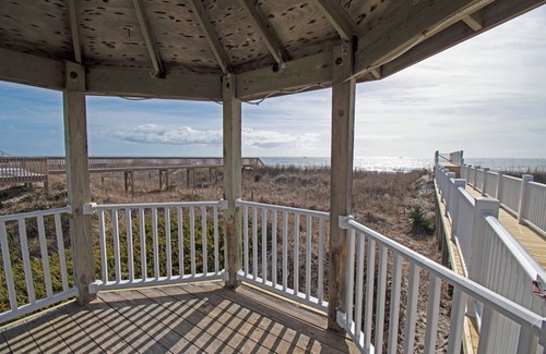 This oceanfront house offers 5 bedrooms and 4.5 baths. Enjoy features such as central heat and air, a full kitchen with microwave, dishwasher, and new refrigerator, washer/dryer, 6 TVs, DVD player, Blu Ray player, wireless internet, ceiling fans in all rooms, covered deck, sundeck, outdoor enclosed shower, ground level fenced patio with night lights, widow’s walk, lighted gazebo, and a private walkway to the beach.