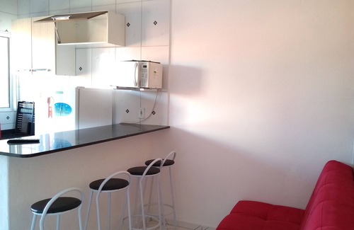 Living room and kitchen, with double sofa bed, TV. LED 28 "Full HD, countertop with stools, refrigerator, stove, cabinets, sink with cabinet, household items (plates, glasses, cutlery, pans, pressure cookers, etc ...), microwave and blender , a room with 01 double bed and a double sofa bed (support), young man and beanbag, a room with 02 bunk beds and wire, both rooms with shelves, ceiling fan, pillows and bedding (sheets, super sheets and pillowcases, without exchange), a bathroom, 02 parking spaces, balcony with barbecue, tank, clothesline, 02 hammocks and table with benches.