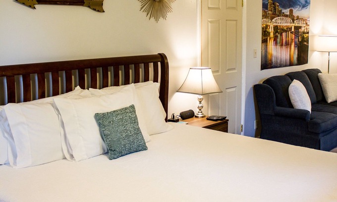 Our cozy 1,000 sq. ft. cottage is 3 min. from the airport (2.6 miles), 9 minutes from downtown Nashville (no traffic), and 8 minutes from The Opry and Opry Mills Mall. You will love the full kitchen, dining room and stool area, TV's in all rooms (YouTube TV sub), and off street parking. Cottage is great for couples, business travel, or families. Has it's own private coded entrance, parking, large living spaces, and is beautifully furnished. Has several amenities including a Keurig and many kitchen supplies. Only shared spaces- main drive way and laundry room. Cottage is private but host lives in basement/ added on section of property. We usually only meet guests if y'all want or need something.