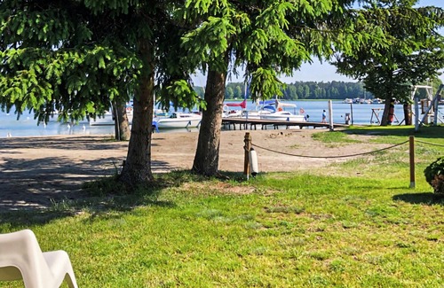 Wide, quiet forests, a large, quiet lake with the best bathing quality and a small harbor right in front of the door: welcome to the village of Rydzewo in the Masurian Lake District region. Here you will stay in an attractive wooden cottage, a few steps away from the piers where the boats are moored. Through the large window front you can see your terrace and the lake. Start your days comfortably, with a coffee in hand head to the shore, and maybe take a dip every morning.