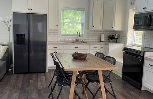 CABIN: 2 - bedrooms with a queen bed in each bedroom. Bedroom 1 is on the main floor, Bedroom 2 is in the loft area, but totally enclosed with a privacy door. A sitting room in the loft area. The bathroom is on the main floor with a tub/shower and a vanity with 2 sinks. A laundry room with a washer, dryer and laundry tub. The living room has a big sectional, an electric fireplace, a smart TV and a DVD player. A kitchen with a Refrigerator, ice maker, microwave, oven, coffee bar, and a dining table. TECHNOLOGY: We provide free internet by Spectrum. There is a smart TV and a DVD player. So bring your own subscriptions and your favorite DVDs. ATTRACTIONS: About 1 mile to Cross Mound Park where you can take a short hike to see the Cross Mound. Walk to town to enjoy meals at Crosstown Creamery, open Tuesday-Sunday or Paps, open Friday evening, Saturday evening. Enjoy shopping at Footsteps in the Past across from Crosstown Creamery. Tarlton also has a Dollar General and a gas station with a IGA. Cozy Creek Cabin is within reasonable distance to the Hocking Hills State Park attractions, and surrounded by Historic towns with lots to do. Chillicothe, Lancaster, and Circleville the home of the Pumpkin Show. Come enjoy Gods beautiful creation!