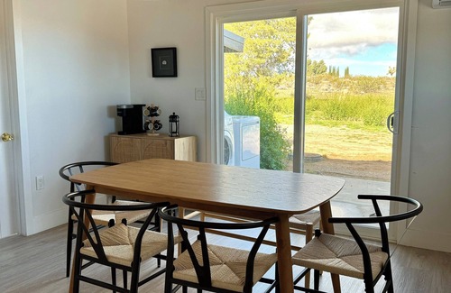 This beautiful, renovated home comes equipped with a yoga area, a master bedroom that offers a huge closet, and two queen-sized beds, the kitchen comes with everything you will need to stay in and cook instead of having to go out to eat. The bathroom is fully renovated. The second bedroom has a small office desk and a view of the backyard. The dining room offers an amazing view of the desert, for enjoying your morning coffee relaxing, and watching the sun come up.