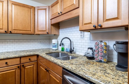 We keep the property stocked with K-cup coffee, sugar and creamer. Pam oil is provided for cooking. Liquid dish soap and sponges are on the sink.
