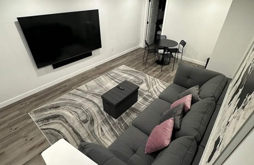 Welcome to our cozy Airbnb retreat, just a stone's throw from the airport. Sink into plush sofas, enjoy meals at the small dining table, and rest in the inviting bedroom with a queen-size bed and full size sofa bed. Freshen up in the modern bathroom and stay connected with high-speed internet and 86 inches TV. Free parking is available. Whether for work or play, our place offers a perfect base near YEG airport. Book now for a delightful stay!