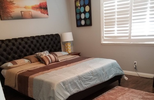 Beautiful house in a quiet Neighborhood. Only 0.5 from the Ontario International Airport. 2 blocks away from Ontario convention center. Walking distance to IN&OUT Burger. Wifi access 200MBPS. TVs in all rooms with Satellite Service. Very Close to shopping malls and many attractions. Fully stock kitchen for your convenience to make you feel like at home. House can comfortably accommodate 5-8 people. Home Gym and swimming pool to make your stay extra Fun.