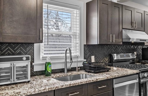 Welcome to our spacious charming 4-bedroom farmhouse in Tannersville, a perfect Pocono retreat for families or groups seeking comfort and nature. This fully furnished home sleeps up to 10 people. With 2 full beds, 2 queen beds, and 1 king bed, each bedroom equipped with a SMART TV for your entertainment. The fully loaded kitchen has everything you need to cook and dine, while the dedicated laundry room with washer and dryer adds convenience. Cozy up in the living room by the fireplace or unwind in one of the two modern full bathrooms. Step outside to a serene backyard nestled in the woods, complete with a hammock for lazy afternoons and a fire pit for evening gatherings. The wraparound porch offers a relaxing spot to sip coffee, listen to birds chirping, and soak in peaceful forest views. During the summer you can enjoy a cool and comfortable stay with AIR CONDITIONING in every room. Whether it’s a hot summer day or a warm night, the whole house stays perfectly chilled so you can relax and sleep in comfort. Just minutes from Camelback Mountain and Tannersville’s most hottest attractions, this farmhouse blends rustic charm with modern amenities for an unforgettable stay.