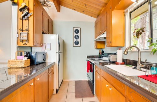 KITCHEN: Refrigerator, drip coffee maker, stove/oven, microwave, toaster, Crockpot, blender, dishware & flatware, cooking basics