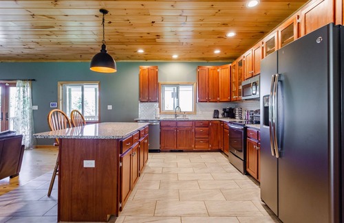 -Please be aware there is a pond, pool and hot tub on this property. Pool is the only one that is fenced. Please keep an eye on children and use safety precautions while using each body of water. Life jackets available.