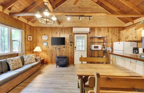 Beautiful lakeside cabin featuring 2 bedrooms and a loft overlooking the living room with beautiful tongue and groove wood throughout. Each bedroom has a queen bed and the loft features 3 twin beds. Each bed has a comforter and spare blanket. There is 1-bathroom with a shower, and we supply soap and 2 rolls of toilet paper. Enjoy the seasonal views from the large deck of beautiful Lake Wallenpaupack. PLEASE NOTE: WE DO NOT SUPPLY sheets/pillowcases/towels so please bring them with you. There is a full kitchen with a microwave, toaster, electric stove/oven, refrigerator, drip coffee pot and comes fully stocked w/ pots, pans, dishes, glasses, utensils, dish towel and one roll of quality paper towels. The cabin has Wi-Fi, cable and a 43” smart TV and we have increased internet bandwidth so you can access Netflix account, etc. The Cabin has an in wall 18,000 BTU split unit air conditioner/heater. It also has a propane fireplace and baseboard electric heating. The cabin has all of the amenities of home, with a rustic country décor, sitting on a quiet road, just a stone’s throw from the lake. The Cabin features a screened in porch and it has a deck with a picnic table. This is 1 of 4 cabins sitting on 2+ acres with its own (seasonal) private dock in quiet Ironwood cove on beautiful Lake Wallenpaupack, which has much less boat traffic than the main part of the lake. The dock is a short walk from the cabins and directly to the left of the boat launch (when facing the water). You can have one motorized watercraft (not to exceed 22 feet) docked with your cabin rental. We need to know in advance that you are bringing a boat and boat size. PLEASE NOTE: This is a shared dock for boats (2 on the main dock and 2 on the walkway. IMPORTANT: We need flexibility If you have a smaller boat. We may ask you to park it on the walkway IF other guests have larger boats. Each cabin has its own charcoal cast iron grill as well as a fire-pit with 4 chairs. There is a neighbor across from the property that sells firewood (on Launch and Bent Road). In the middle of the 4 cabins is a common area with horseshoes, ladder ball and corn hole. We are dog friendly for an additional fee of $50 per dog (per stay, per dog). You must let us know how many dogs you are bringing in advance. Access is 24/7 to your rental via a combo door lock. The rental is for the entire cabin, deck, property and access to the dock seasonally. Lake Wallenpaupack is the Largest lake in the Poconos. A true escape from the city and suburbs with great food and nature to enjoy. Winter activities: Sking: Big Bear (45 mins), Camelback (45 mins), Snow Mountain (40 mins) Elk Mountain one hour away. Snowtubing at Big Bear and Camelback. Snowmobiling: Nearby State Park has designated trails and once Lake Wallenpaupack freezes Ice Skating: When the lake freezes you can use the lake. Use common sense to assure your safety. Annual Ice Tee Golf Tournament - January Annual Chili/Wing Cook off - March Bowling Center - 6 miles You need a car to get around, it's the Poconos. There are restaurants, grocery stores, beer stores all within 15 minutes.
