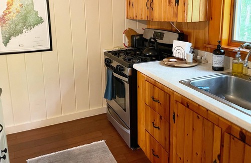 Cozy lakefront cottage in Western Maine. Enjoy relaxing on the large dock, swimming in the shallow, sandy water, jumping off the floating dock and exploring the lake on the 3 kayaks, paddle board & canoe provided. Located just minutes from some of the best outdoor activities in the Maine mountains. This 700 sq ft. cottage is ideal for a weekend getaway or a relaxing week filled with swimming, kayaking, hiking, biking & canoeing. Located just minutes from Mount Abram and 15 minutes from Bethel.