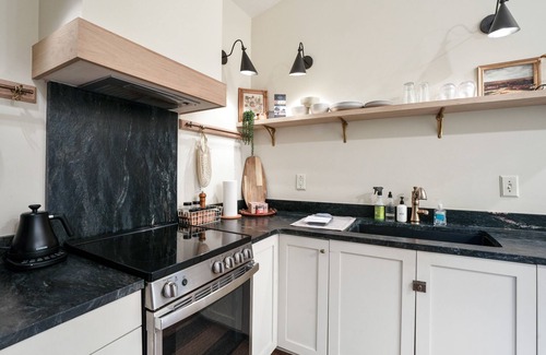 Be transported 1000s of miles away to the English countryside inside this 450 sq ft cottage. It contains a bedroom with a king bed and room darkening blinds, full bathroom with shower, and an open concept living room, dining room and fully stocked kitchen. Large windows in the living room and bedroom look out onto a private deck, hot tub, fire pit, small pond, and of course, the tranquil woods of Wilder. No WiFi available.