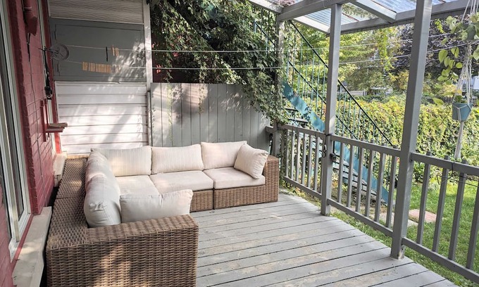 Apartment is on the ground floor of a duplex, in the hip neighbourhood of Verdun, has 3 bed, 1 bath, fully furnished, with backyard deck, garden, parking space, recently renovated, warm and cozy family house feeling.