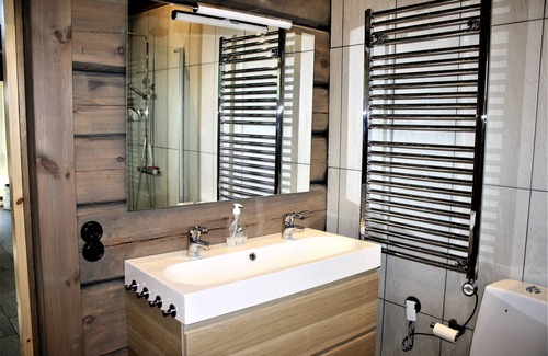 A log house wall absorbs and gives humidity to the room. Ideal humidity inside is 30-50%. Log houses of massive timber breathe and is of nature always inside this interval. The air is pleasant to breathe and a dream asthma and allergic individuals. Spacious terrace with outdoor furniture and hot tub overlooking the lake. House have underfloor heating and fireplace for cozy moments. There boats, canoes and a kayak in the lake for guests.