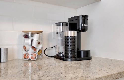‣ A Keurig coffee machine with coffee capsules to kickstart your mornings