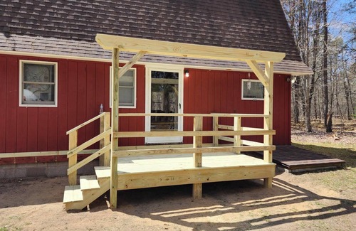 Get away from it all at Happy Days Up North, our cozy Northern Michigan retreat. You'll notice the 5 acres of privacy as soon as you pull into the driveway, with the cabin nestled into the surrounding woods. A brand new deck brings you up to the cabin's entrance. When you step inside, the open concept kitchen/dining/living area welcomes you. You'll feel right at home with two comfortable bedrooms and a bathroom downstairs. There is a sleeping loft upstairs, where all the kids can stay together with 4 twin beds and 2 trundles! Cozy up with a good book at our reading nook on the loft landing looking over the main living area with knotty pine ceilings. The well-appointed kitchen is great for cooking your favorite meals.