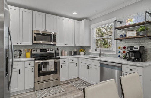Come home to this quiet, family friendly neighborhood close by local restaurants and stores. The 4 bedrooms will accomodate up to 12 people with plenty of space for cars too! Beautifully renovated to fulfill all your needs!