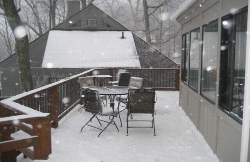 the cottage has large front and rear decks, stairway to slopes, nice furniture and bedding, fully equipped kitchen, sleeps 6 with 1 king, 1 queen, and 2 twin beds..2 flat screen TVs, wireless internet and cable, DVD player, washer/dryer, living room has wood burning fireplace with wood provided, off street parking, great privacy at end of street ...2 minute drive to restaurants and entertainment.