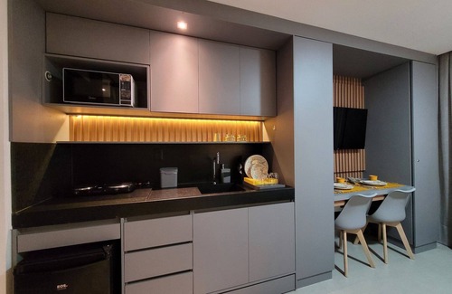 The kitchen includes a minibar, blender, sandwich maker, coffee maker and electric stove, with pans and utensils to prepare your meals comfortably. It has a double bed with a single AUXILIARY bed to accommodate another adult or child. Equipped with TV, air conditioning, iron, dryer, clothes closet and bathroom. If you need to work, there is a space equipped with high-speed wired internet. This Studio is fully equipped for short or long-term accommodation, providing a complete and worry-free stay.