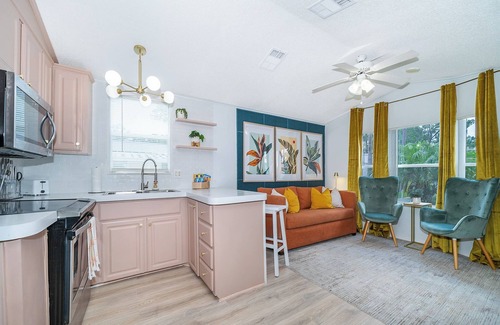 Welcome to Tropical Breeze! This charming and cozy cottage is just 1- 4 miles from major theme parks and attractions. This beautifully updated 2 bedroom, 1 bath cottage with an outdoor living area is bright, spacious, and designed to maximize space while comfortably accommodating your group of up to 7. Discover amazing shops, dining options, and adventures just minutes away! Relax, unwind, and enjoy the calm atmosphere of Tropical Breeze with friends or family. We look forward to hosting you!