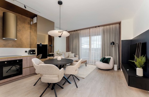 Cracow Novum Apartment #496 is a stylishly furnished apartment featuring a living room with a sofa bed and a kitchenette, a bedroom with a comfortable double bed, a bathroom, and a spacious balcony where guests can relax and enjoy their morning coffee or an evening glass of wine. Guests have access to a wide range of practical amenities, including free Wi-Fi, terrestrial TV, a washing machine, an iron, a hairdryer, a fridge with a freezer, a dishwasher, an oven, an induction hob, a Nespresso coffee machine, a kettle, and kitchenware. The apartment also has air conditioning, which provides exceptional comfort, especially during hot days. A parking space in the underground garage is also available for guests.