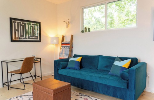 Experience Austin like a local in our newly built guesthouse in the Crestview neighborhood of Central North Austin. Nestled on a quiet street, the Texas-inspired interior is ideal for couples, small families, or a group of friends. Drive 15-min or less to city hotspots such as Downtown, the Domain, East Austin, UT, Q2, and more. Walk to local coffee shops, restaurants, parks, and public transit. Parking is hassle-free on the private driveway.