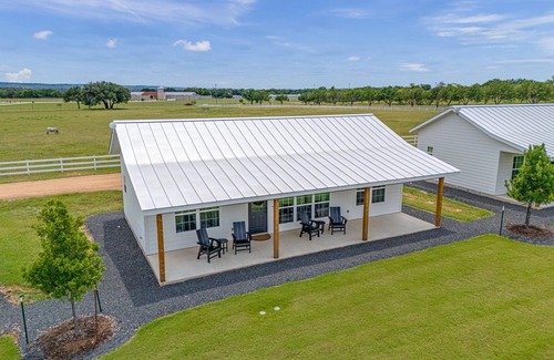 AMENITIES - Beautiful views of the Hill Country with covered porches, a pond, outdoor common areas with a gas firepit & seating, common area outdoor pavilion with three gas grills, cornhole, WiFi, Smart TVs in all living & bedrooms.