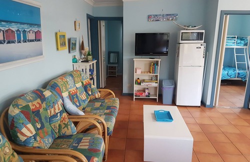 It has two bedrooms. The first has a double bed bunk bed consisting of a double bed on the bottom and a single bed up the top. The second bedroom has a double bed. There’s one bathroom, it even has a washing machine. All of this makes it an ideal getaway for two couples or a small family.