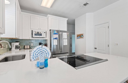Walk to the beach! Our Summer House is a delightful 3 bedroom, 2 bath pet friendly home located only 4 blocks from the sparkling Gulf waters. With a king-size bed in the master, a queen in the second bedroom, two twins over full bunk beds in the third, this house sleeps 10. This lovely home is completely renovated with a gorgeous kitchen with granite and stainless appliances, a grill outside, a beautiful wrap-around porch, and is only a few steps down from the community pool! There's plenty of parking for 2 vehicles, a grill, and a washer and dryer for your convenience. Make memories of a lifetime at Our Summer House!