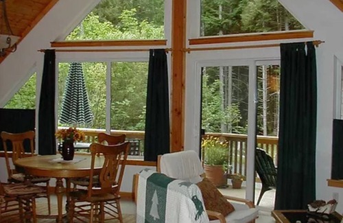 The Carriage House is tastefully decorated with 14 foot high pine ceilings, sky lights, and a two-story window wall that looks out onto a forested landscape. Watch the local