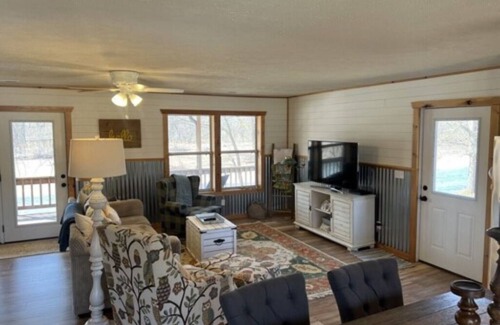 Have fun with the whole family at this stylish cabin. Located on the banks of Current River. It is sure to make a memorable family trip. Everyone has their own room with 3 bedrooms available. A modern, updated bathroom, very nice kitchen, and a front deck overlooking the river to enjoy your morning coffee, or your evening dinner. Go on a float trip, see the Elk near by, or visit Jolly Cone for some ice cream. Memories are sure to be made with a visit to our Cabin on the Current.