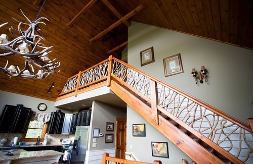 The cabin sleeps 6 in three private bedrooms with master on the main with king bed, guest rooms with queen beds: each with a private bath. You'll find hand selected 'lodge' furnishings, original art and every imaginable comfort. Note: level entry from the parking area. The home is fully provisioned: towels, linens, soaps, tissue, garbage bags, paper towels, cleaning agents, etc. Please note we do not provide wash cloths.