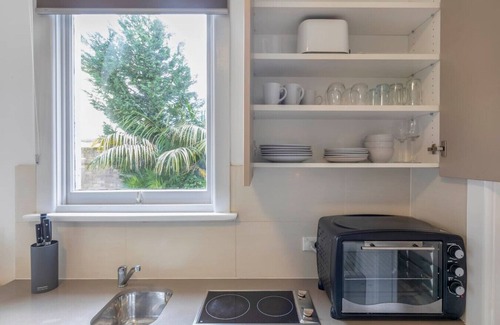 A perfectly situated 1-bedroom apartment with a large courtyard, moments from everything yet whisper-quiet at the rear of a boutique building. Equipped with everything you'd expect in a serviced apartment: luxury Leif toiletries, weekly cleaning, professionally cleaned linen and towels, all kitchen utensils, Nespresso machine, and onsite laundry. A perfect base for your Sydney visit, across from a lovely park and just 2 minutes' walk to the Sydney Metro. Features AC, heating, Wi-Fi and 2 TVs