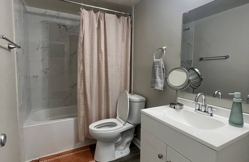 Your cozy getaway awaits in Overland Park at this charming apartment. With 1 bedroom featuring a comfortable king bed, you'll have a fantastic night's sleep. The apartment is equipped with all the essentials, including AC, a washing machine, an iron, WiFi, and heating. The bathroom comes with a hair dryer for your convenience. We think our place will help you experience everything Overland Park has to offer. So pack your bags and get ready for a delightful stay in this quaint apartment.