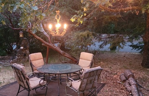 YOUR STAY: This lovely family cabin is a perfect getaway for those who love nature. It is a beautiful spot, surrounded by trees. Only one mile from town, even less to a wonderful brewery and several great wineries. Enjoy your coffee or glass of delicious local wine from several seating areas. Both have the sound of water for your pleasure. There is a table and chairs and a waterfall pond. There are lights strung in the tree, making this a great place to BBQ on the gas grille, or just to enjoy the evening. There is a café table and the sound of a fountain with views of Vulcan Mountain. We often see birds, wild turkeys and deer on the property.