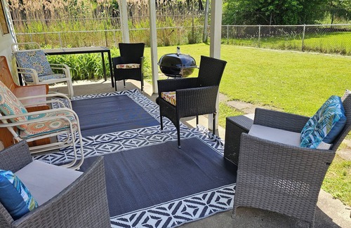 And spend the rest of your evening in our backyard equipped with grill and patio chairs.