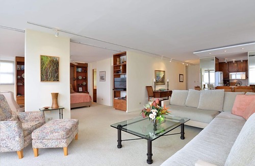 Begin your evenings with a cold drink in hand, relaxing in the living room as the sun settles over the Pacific, or test your cooking skills on the community grill located on the 10th floor rooftop. Finally, fall asleep to the sound of the surf and in the morning wake up, roll over and check out the tide. There are sleeping accommodations for 6 guests with an eastern king bed in the master, as well as a queen and trundle bed in the 2nd bedroom. Slide-away screens provide privacy between the master bedroom and living room.