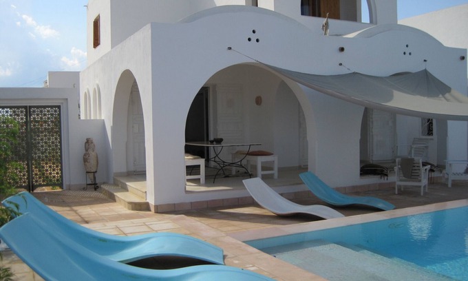 Best-rates for the Djerba Midun house starts from $176 per night with includes Wellness Facilities, Fireplace/Heating, Entertainment, Barbecue/Outdoor Cooking, Parking, Private Pool, Ocean View, Balcony/Terrace, Oceanfront, Child Friendly, Internet, Kitchen, Security/Safety, Bedding/Linens, Laundry, Air Conditioner, Pool, TV, View with all other facilities. BedroomVillas.ca matches every traveler with their perfect villa, resort, or rental and whether you are traveling with a group, friends, family, or pets.