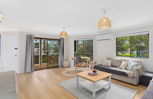 This immaculately presented and fully renovated three-bedroom, two-bathroom house is the perfect accommodation for families seeking a serene and relaxing holiday experience. The kids will love the long driveway for their bikes and the expansive grassed area to play.