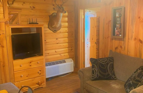 Queen Size Bed for Ma and Pa, a bunk to sleep three of the herd, and cozy love seat and sofa for relaxing. Cook your favorite vittles with the Kitchenette with two burner stove, Fridge, and Microwave, and Toaster Oven. Screened in porch for mountain gazing, sipping sweet tea, and bragging about the day's hunt. Charcoal grill, Mountain vista with picnic table views, Wi-fi, Satellite TV, Easy Access to Wolf Pen ATV trails.