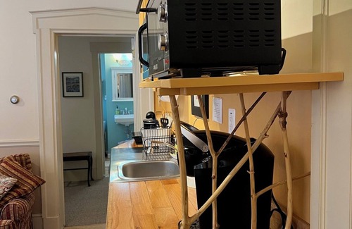 We have a first-floor,two-room suite with its own entrance in our home, located on an official Vermont Scenic Highway, in the middle of the Green Mountains. The suite has a large sitting room with a kitchenette, a bedroom with queen bed, and bathroom with tub/shower.