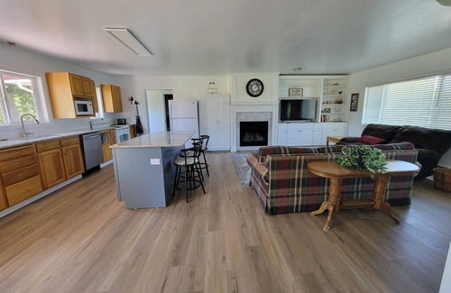 Newly remodel home, with a beautiful yard, lots of shade trees, and a peaceful location. Great for family get away, or relaxing after a busy travel day. Extra bonus room for children play area. Two large TVs, gas fireplace, washer & dryer. A large deck off the kitchen for outside dining or family party. Close to local attractions: Craters of the Moon National Monument, Arco Number Hill, EBR1 Nuclear Museum, ATV trails, hunting and fishing, and perfect sky for star gazing.