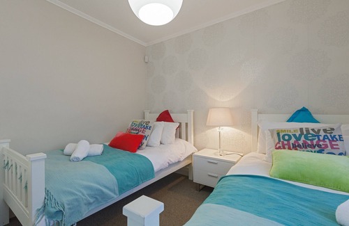 The second bedroom have 2 single beds and are suitable for both children and adults alike, with white wooden bed frames and bright colour.