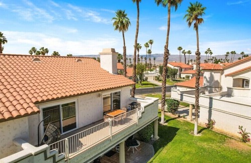 Welcome to beautiful Palm Desert. This newly updated second level 2bd 3ba (3rd room w/ Murphy bed) is located inside Desert Falls Country Club. Where you will have full access to the gym, tennis & pickleball courts, pay as you play golf course, restaurant & bar. Less than 5 min from the new Acrisure Arena, multiple casinos & The Living Desert Zoo. Brand new beds, furnishings, smart tv’s in every room, fully stocked kitchen, Wi-Fi, balcony area w/ flat griddle, egg chair, and fire pit, game room in garage with ping pong table, darts, foosball table, bball arcade, his & her bikes.