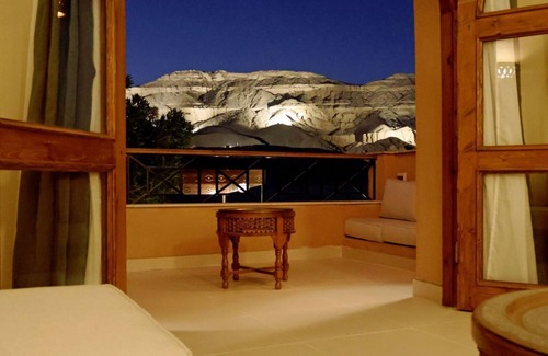 The top floor also houses a shared lounge, perfect for unwinding amidst the expansive desert views. The rooftop terrace is a spectacle of nature, offering panoramic views of the verdant fields, the imposing Habu Temple, the storied Valley of the Queens, the remnants of Amenhotep\'s palace, and the infinite desert.