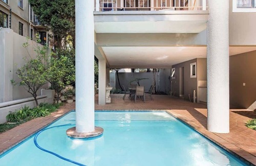 Large ground floor garden apartment with special touches. 1km to Mandela Square & Gautrain. Walk to Sandton financial hub. Peaceful apartment with mediterranean feel. Ideal for business and families
