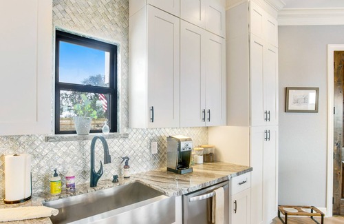 Newly built and absolutely stunning inside and out, The Heavy Pour is just the place for a family reunion or couples traveling together on a Fredericksburg vacation they won't soon forget. Each dreamy vacation day can be filled with a plethora of fun activities the whole gang will enjoy with the sparkling pool, gas grill, furnished patio, and expansive deck all at your fingertips for tanning and reminiscing with loved ones. There is even a fenced yard and medium-size crate for those traveling with dogs! Keep an eye out for deer, rabbits, hummingbirds, turkeys, or roadrunners while watching the sunset. The deer feeder ensures that you can rest peacefully. The serene neighborhood is the perfect place to take in the fresh air with a beautiful walk, run, or bike ride. You can also easily venture out and visit the charming restaurants, cafes, and shops downtown! Plus, you'll be staying in a prime location very close to the heart of Texas Wine Country.