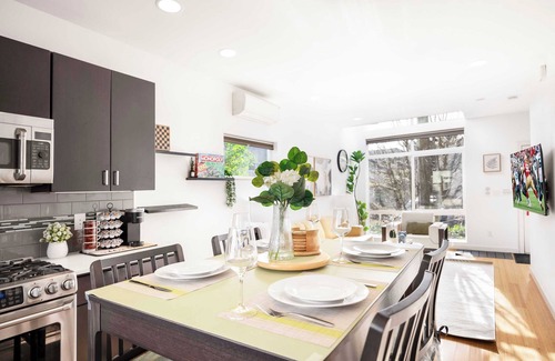 Welcome to your urban sanctuary! This chic 2BR/2.5BA (1,210 sqft) home blends modern design with comfort. Unwind in the master suite with a private balcony offering stunning mountain vistas. A dedicated office (large desk included) caters to business travelers and remote workers. Explore Fremont’s charm: steps from Sunday Market, Wallingford shops, Gas Works Park, Woodland Zoo, and Ballard Farmer’s Market. Commute stress-free—just 4 mins to I-99. Enjoy year-round comfort with 3 split AC units. Perfectly positioned for work and play!