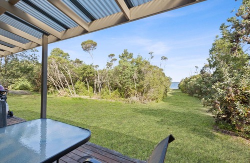 These cozy lodges are located in a beautiful, tree-shaded bush area where you can relax on the large private deck and watch kangaroos, birds, and echidnas pass by. Your lodge includes everything you need for a peaceful, memorable stay, including TVs and DVD players, a fully equipped kitchen, a gas log fireplace, a large dining table, and a BBQ for outdoor cooking.